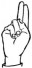 На ћирилици написано КОСТАДИН ЂОШОВИЋ састоји се из 15 слова [?]. Исписано ћириличном једноручном азбуком за глувонеме: